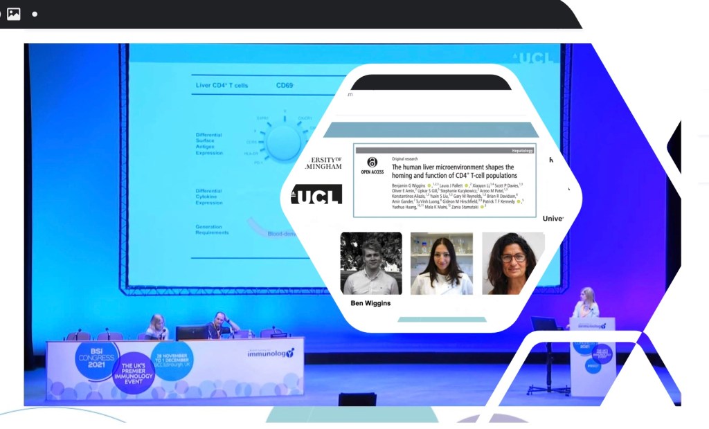 Sudha’s talk on Mapping the human liver B cell compartment in health and disease was first in the session on B Cell Development & Homeostasis. Ben presented his work on the importance of considering migration when assessing T cell function as a poster.