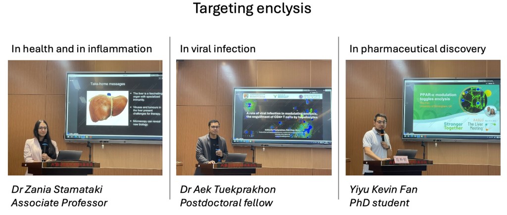 We are grateful to our collaborator Dr Fei Wang, for the invitation to present our latest work at the Affiliated Hospital, Inner Mongolia Medical University, Hohhot, China. Enclysis targeting reveals new opportunities for the benefit of patients with liver diseases, including viral hepatitis and liver cancer.
