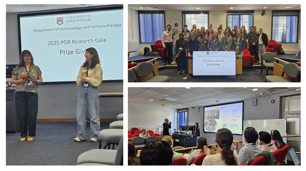 Congratulations to our PhD student Yuxin Li, whose work attracted the most questions at the postgraduate student gala. She is receiving her prize from the Department of Immunology and Immunotherapy postgraduate researcher lead Dr Claire Shannon-Lowe.